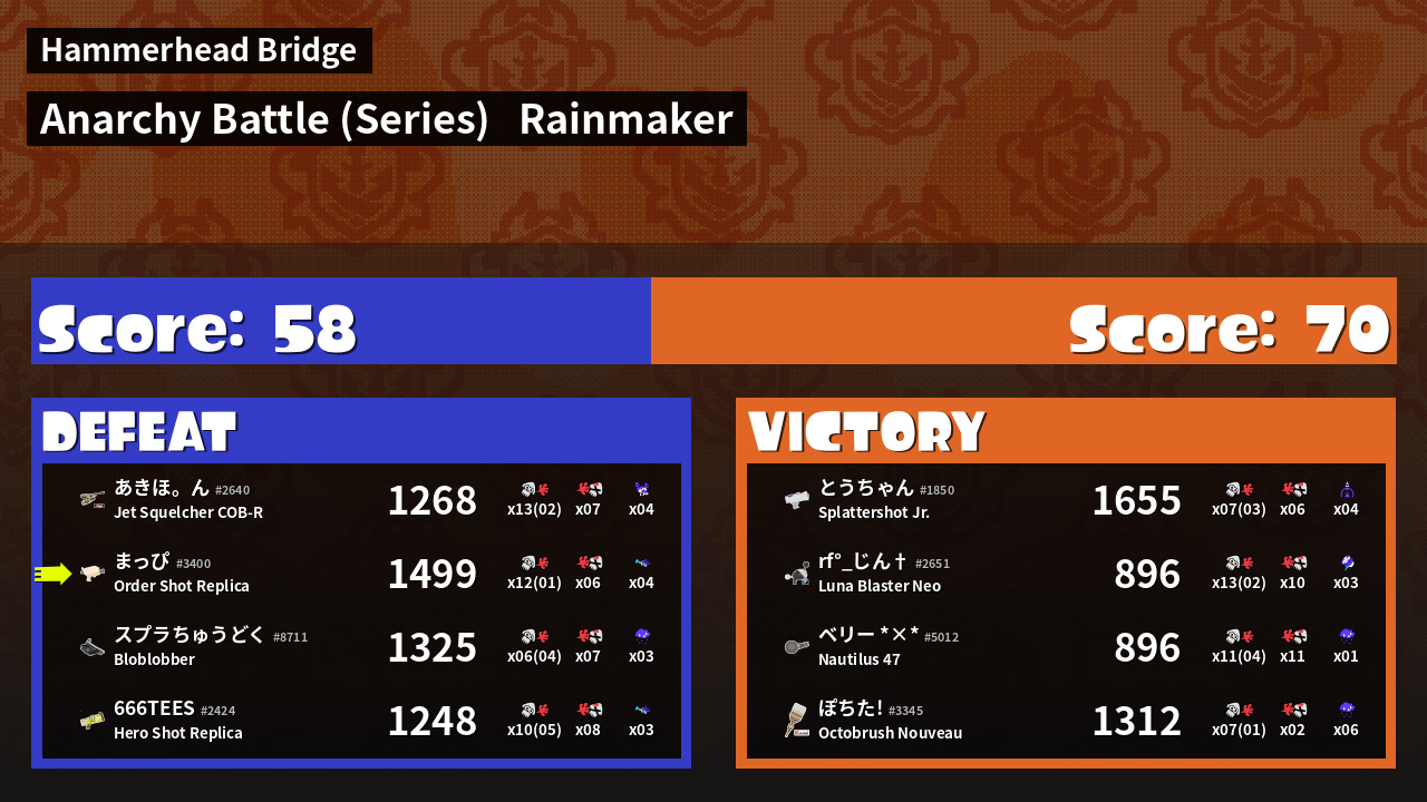 | Mode | Rainmaker - Anarchy Battle (Series) |