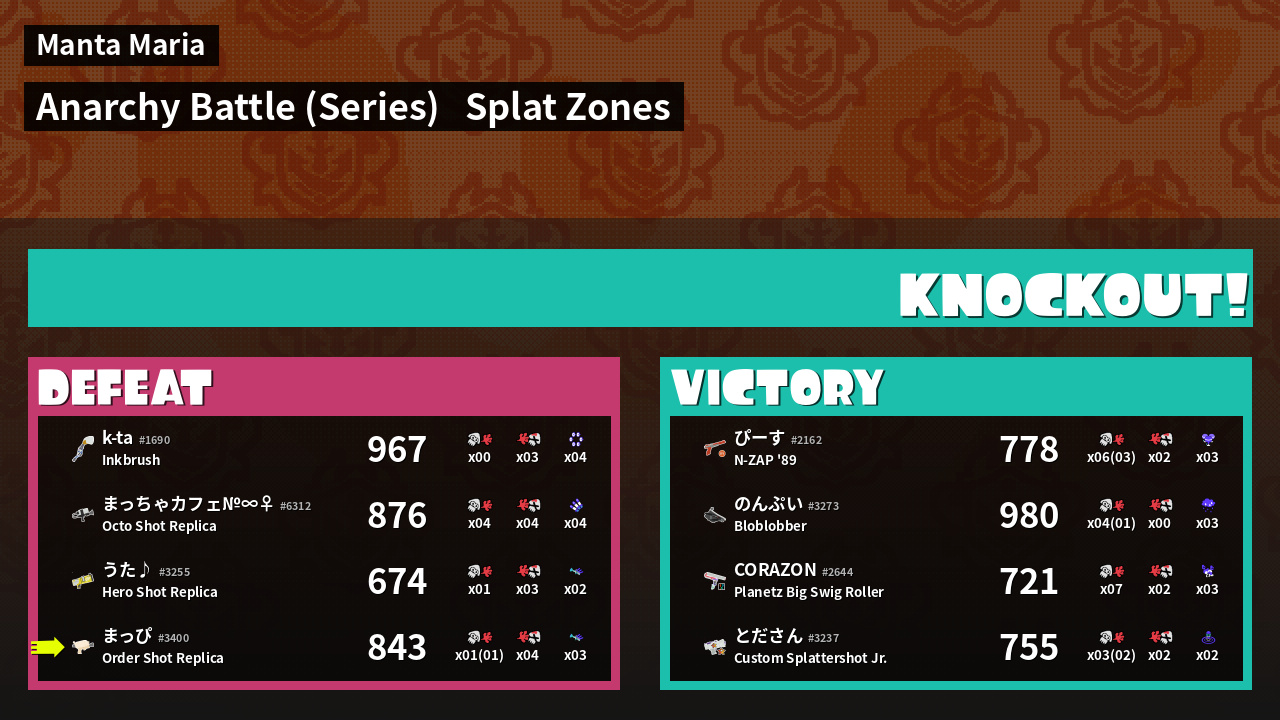 | Mode | Splat Zones - Anarchy Battle (Series) |