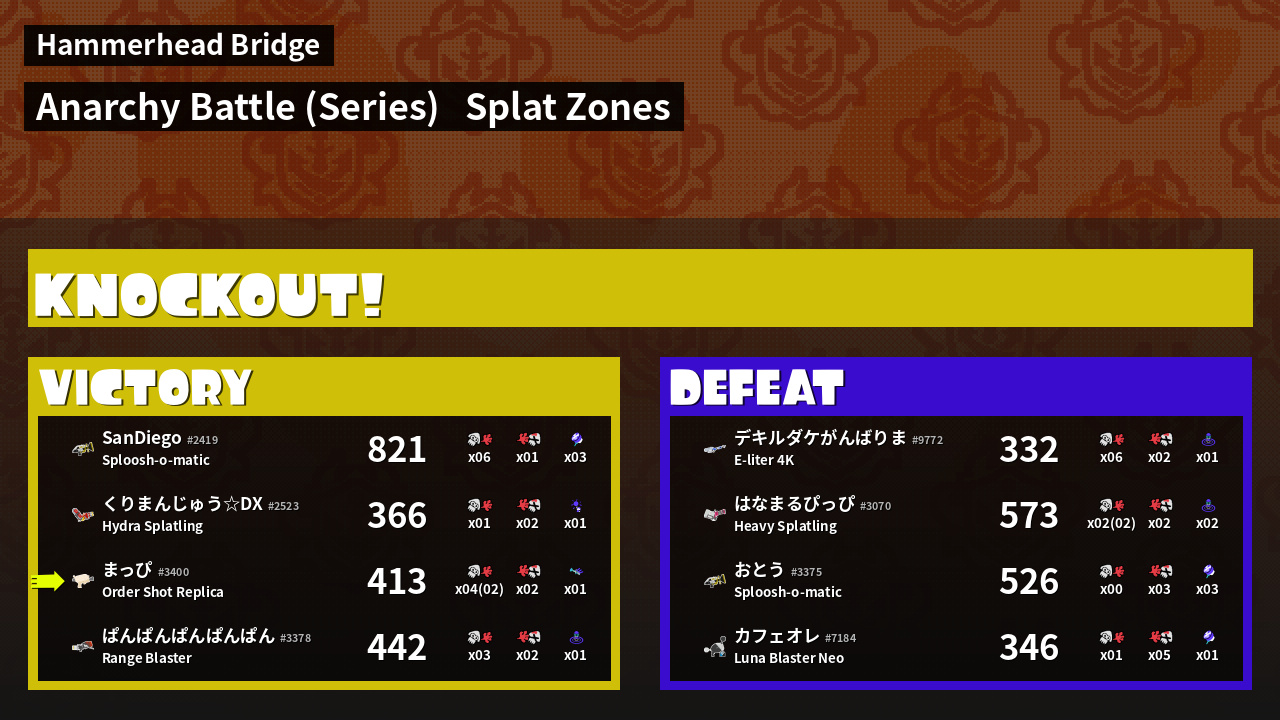 | Mode | Splat Zones - Anarchy Battle (Series) |