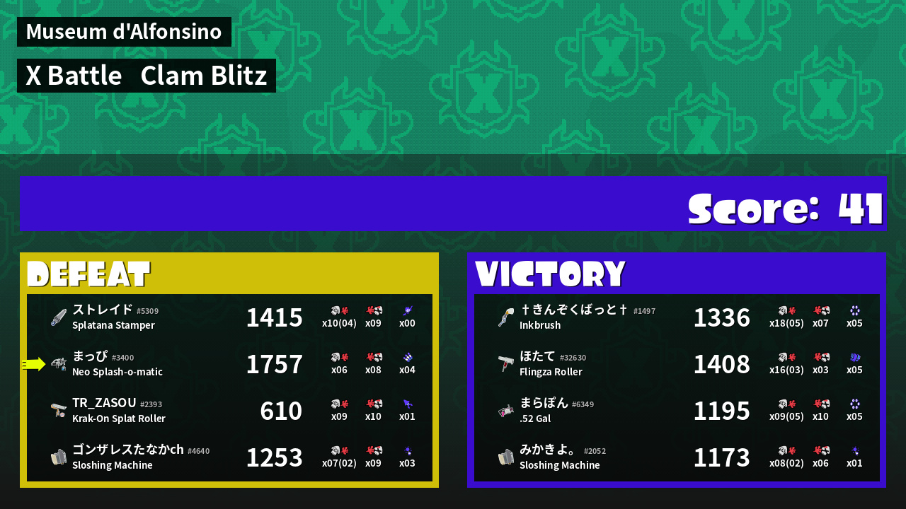 | Mode | Clam Blitz - X Battle |