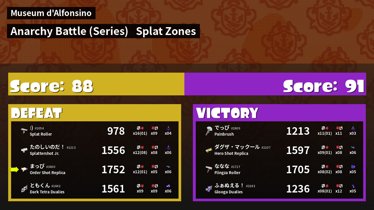 | Mode | Splat Zones - Anarchy Battle (Series) |