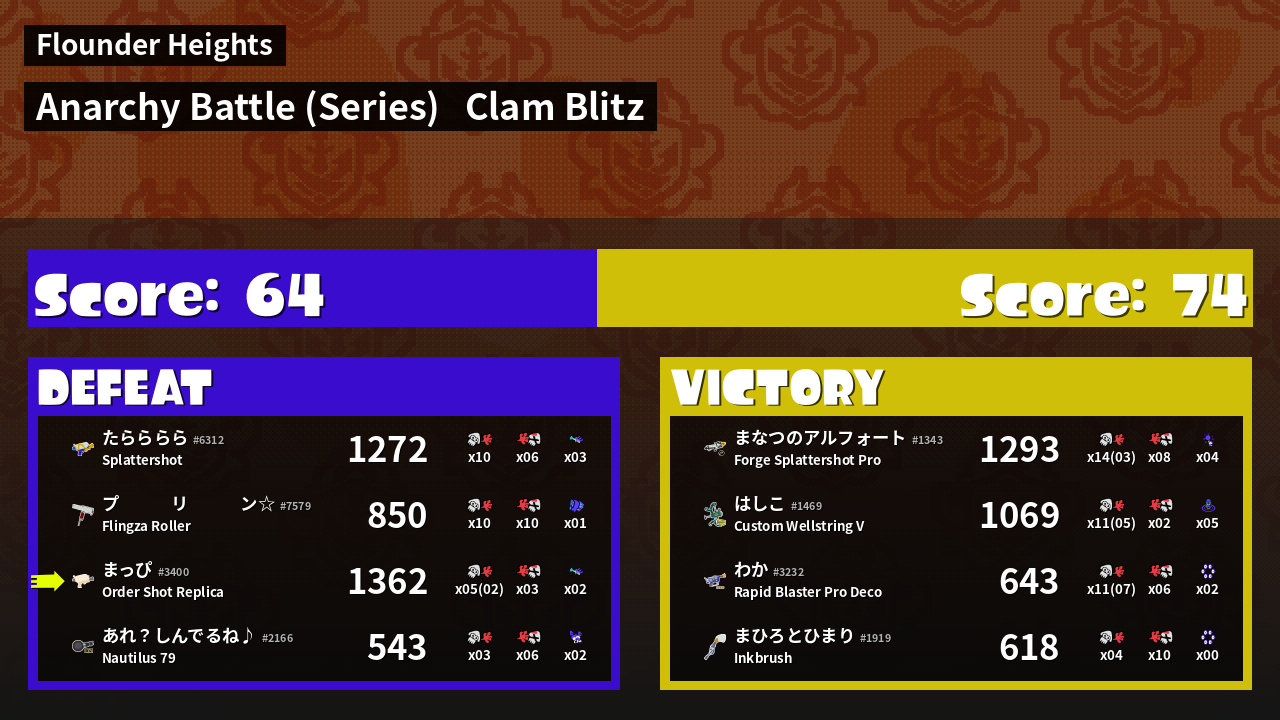| Mode | Clam Blitz - Anarchy Battle (Series) |