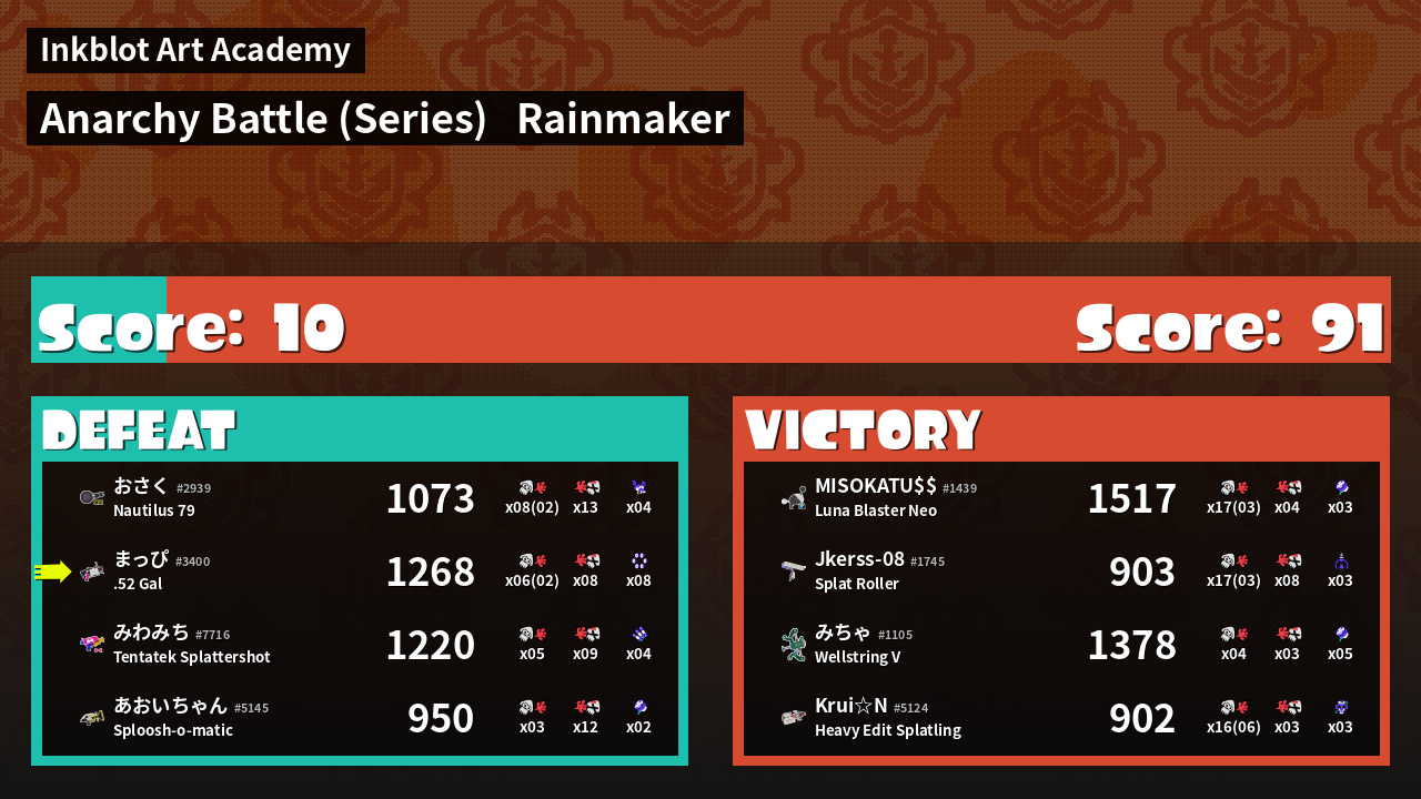 | Mode | Rainmaker - Anarchy Battle (Series) |