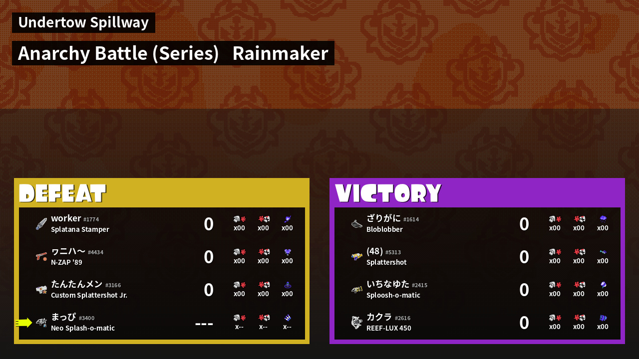 | Mode | Rainmaker - Anarchy Battle (Series) |