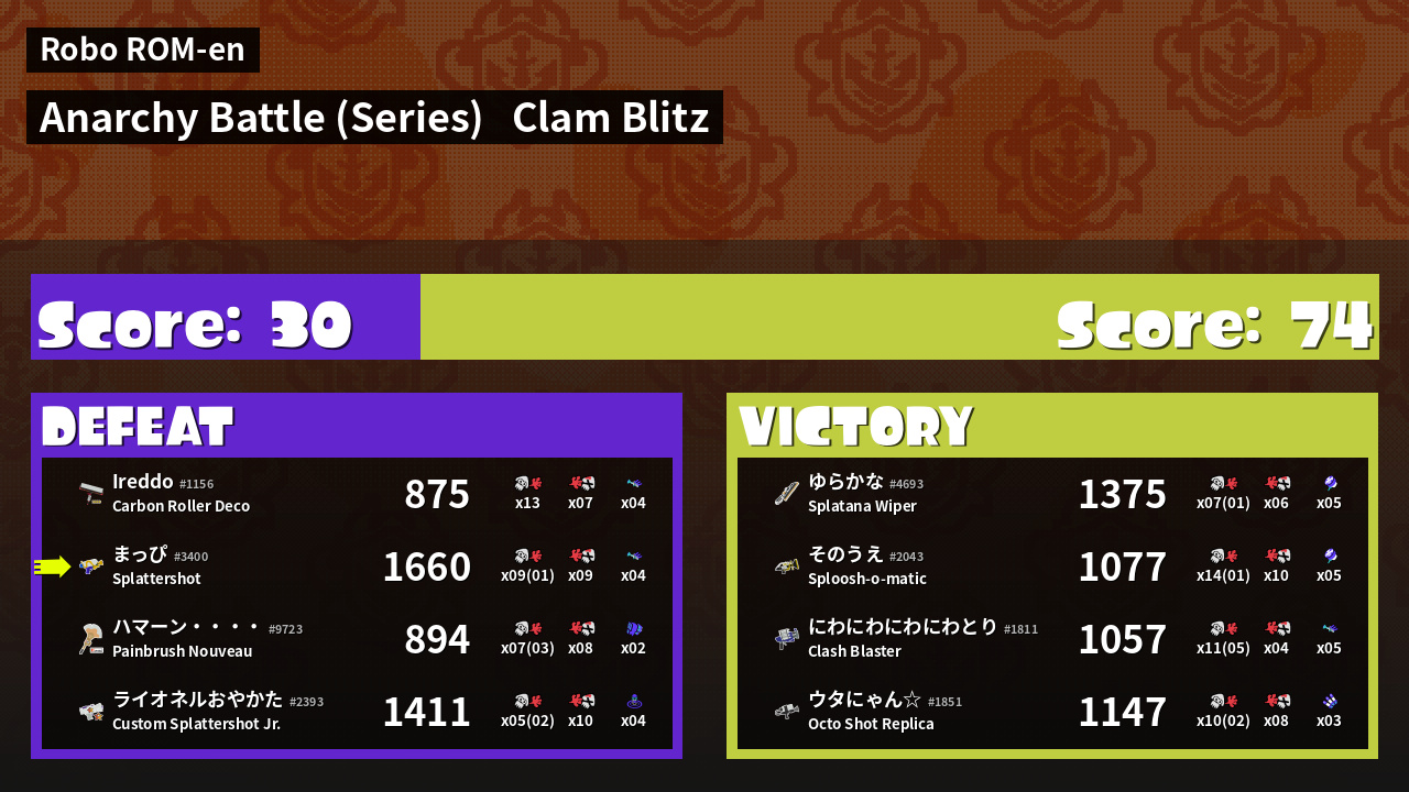 | Mode | Clam Blitz - Anarchy Battle (Series) |