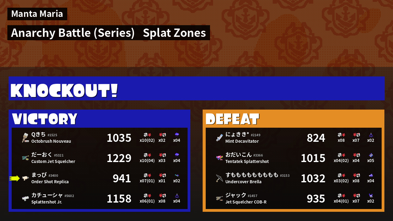 | Mode | Splat Zones - Anarchy Battle (Series) |