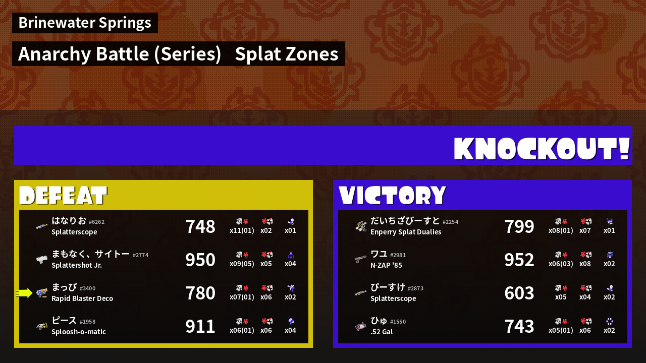 | Mode | Splat Zones - Anarchy Battle (Series) |
