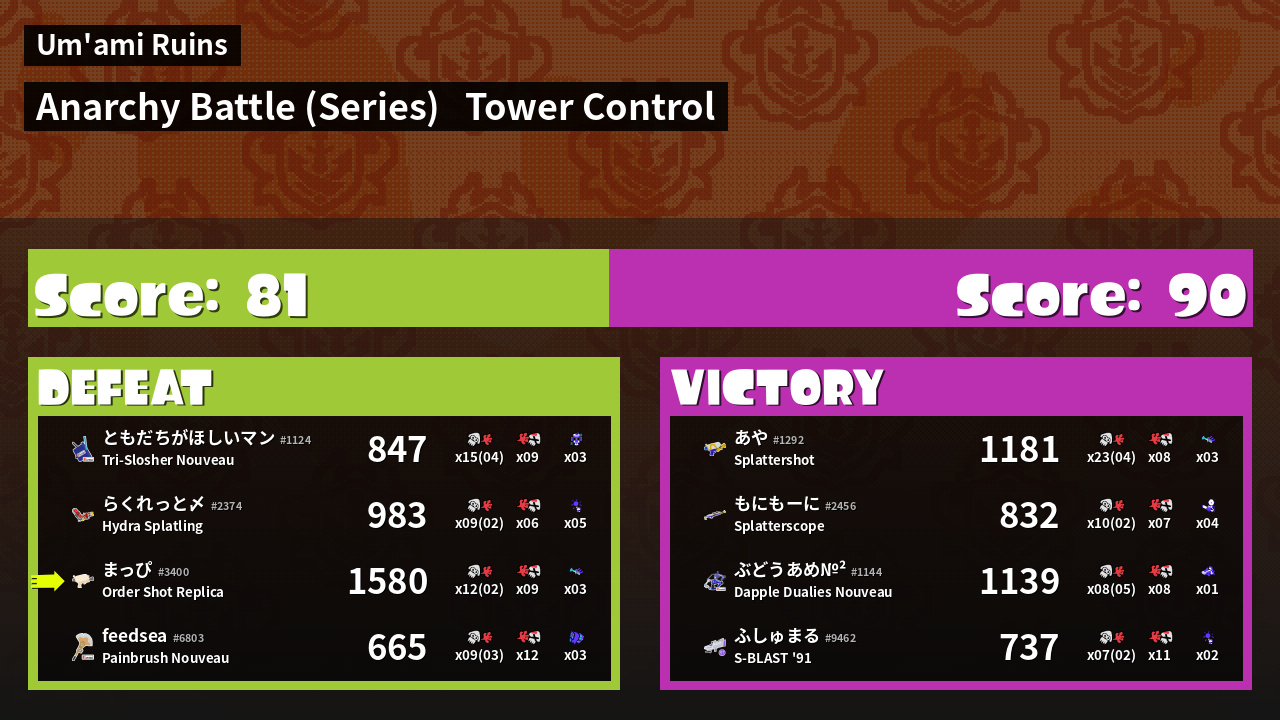 | Mode | Tower Control - Anarchy Battle (Series) |