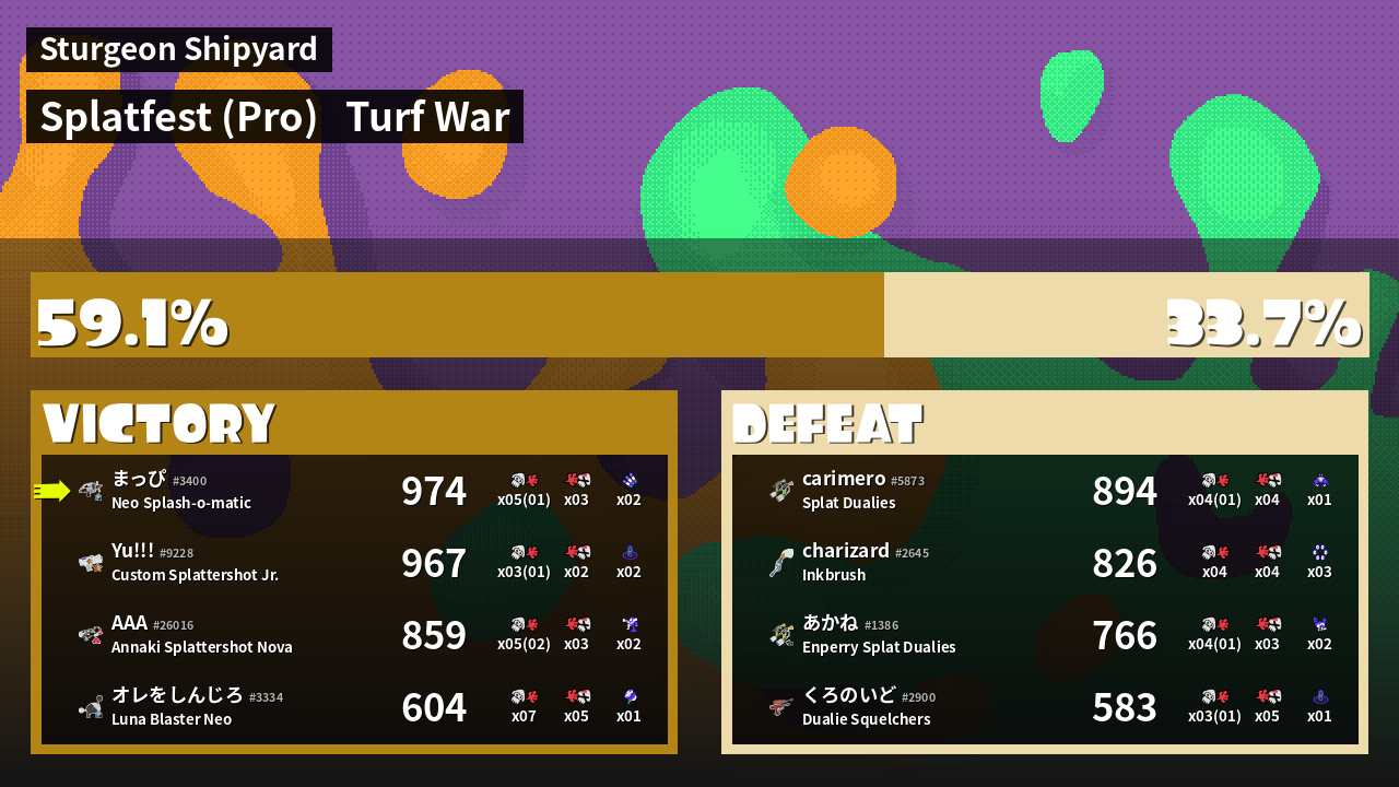 | Weapon | Neo Splash-o-matic ( Suction Bomb / Triple Inkstrike) |