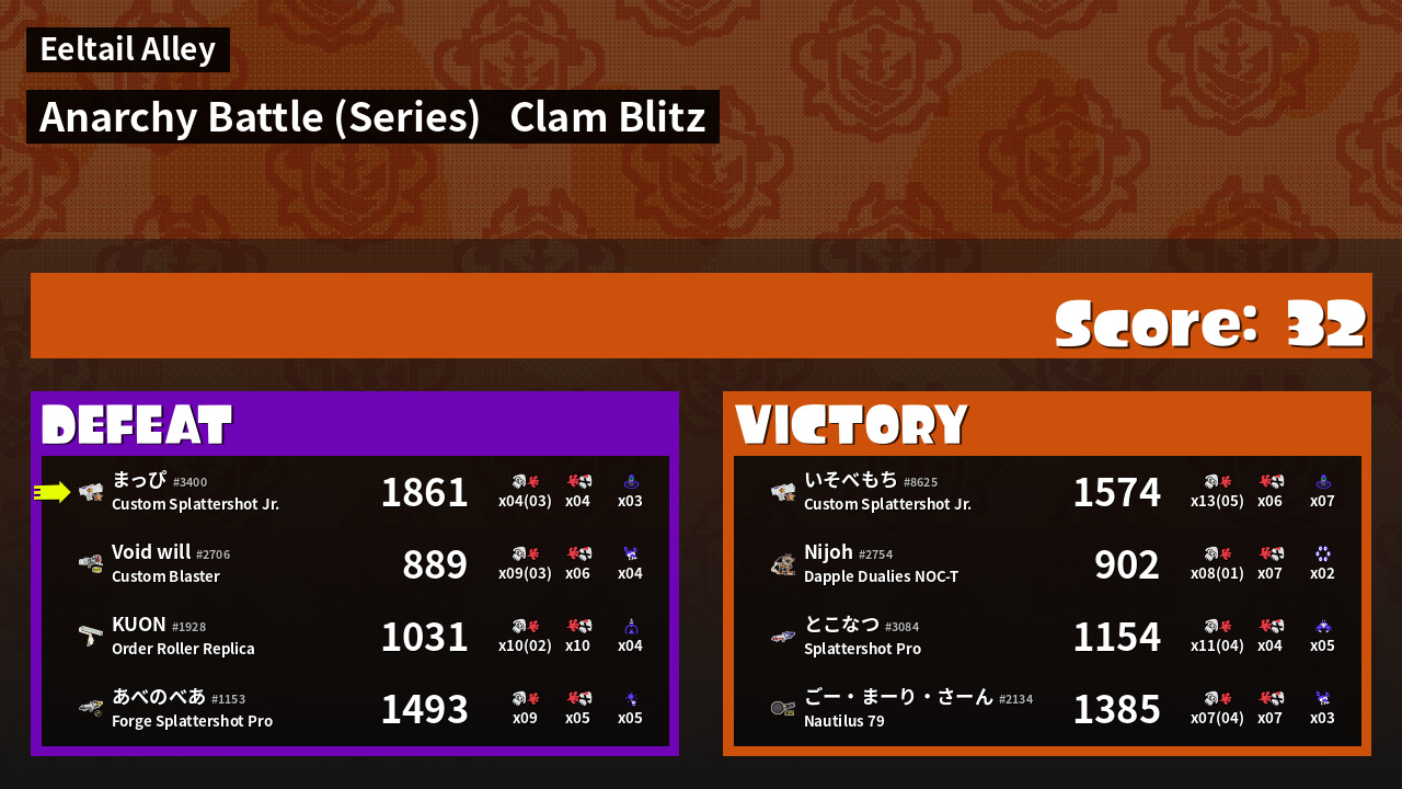 | Mode | Clam Blitz - Anarchy Battle (Series) |
