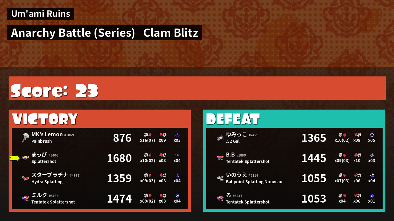 | Mode | Clam Blitz - Anarchy Battle (Series) |