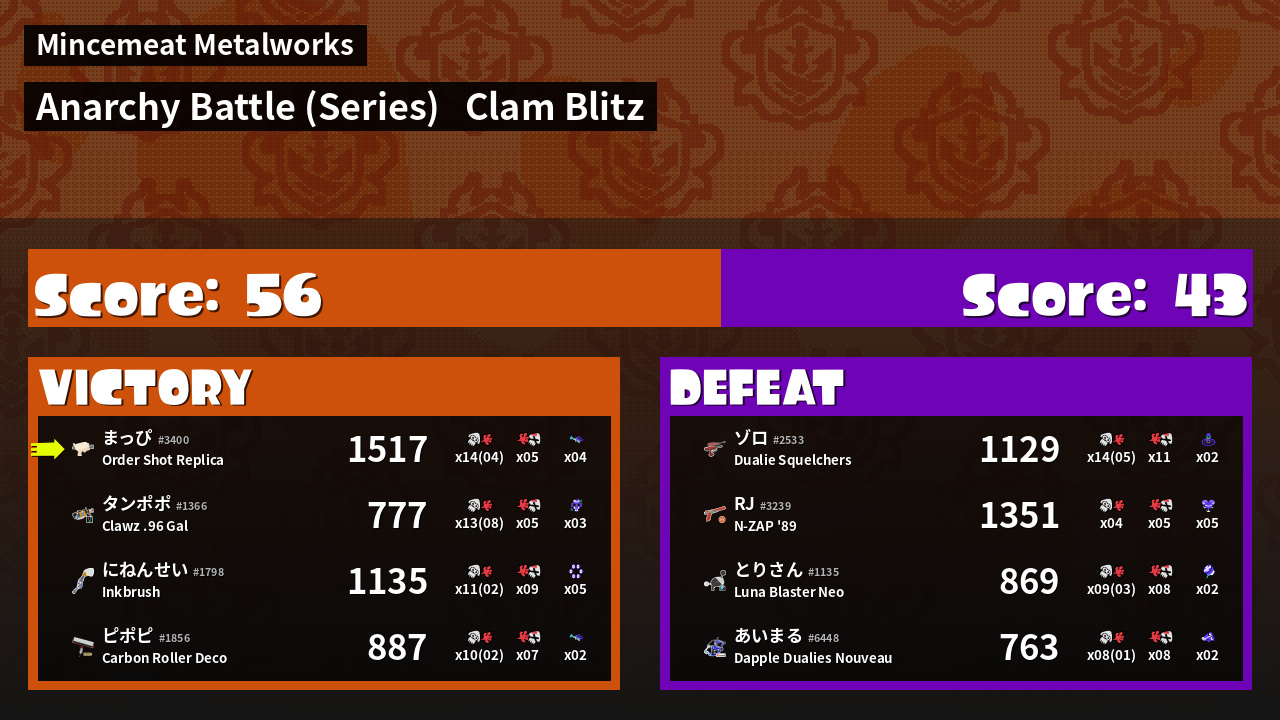 | Mode | Clam Blitz - Anarchy Battle (Series) |