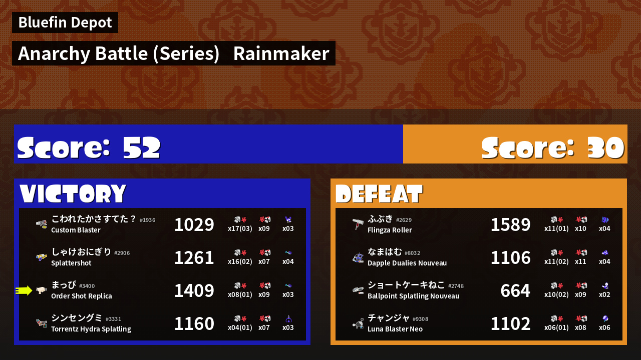 | Mode | Rainmaker - Anarchy Battle (Series) |