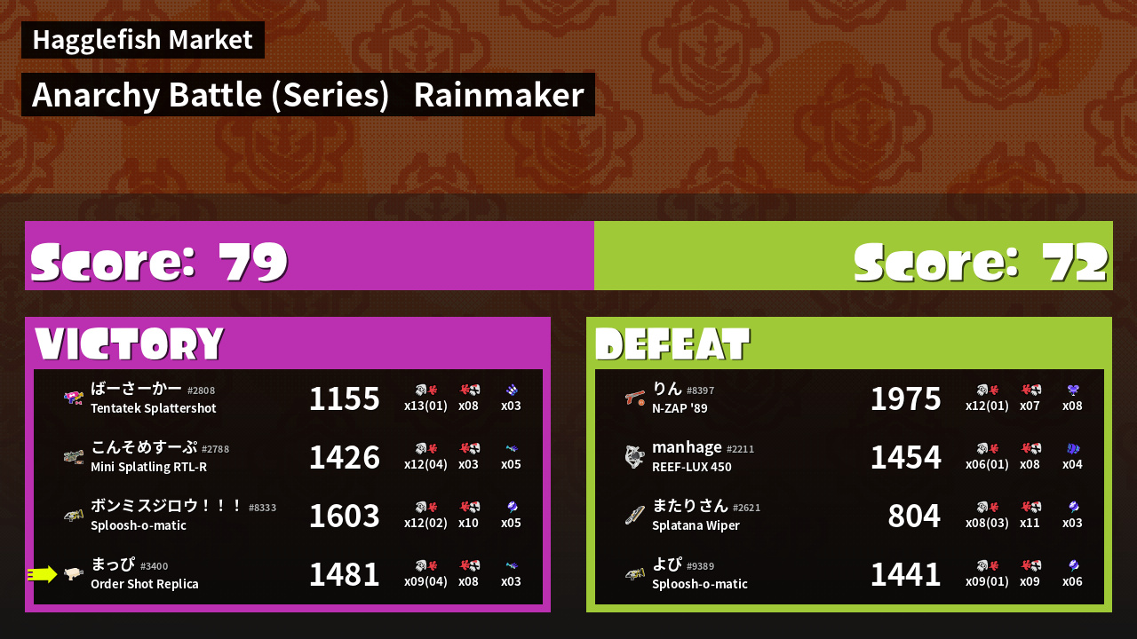 | Medals | #1 Splat Assister #1 Checkpoint Breaker #1 Rainmaker Carrier |
