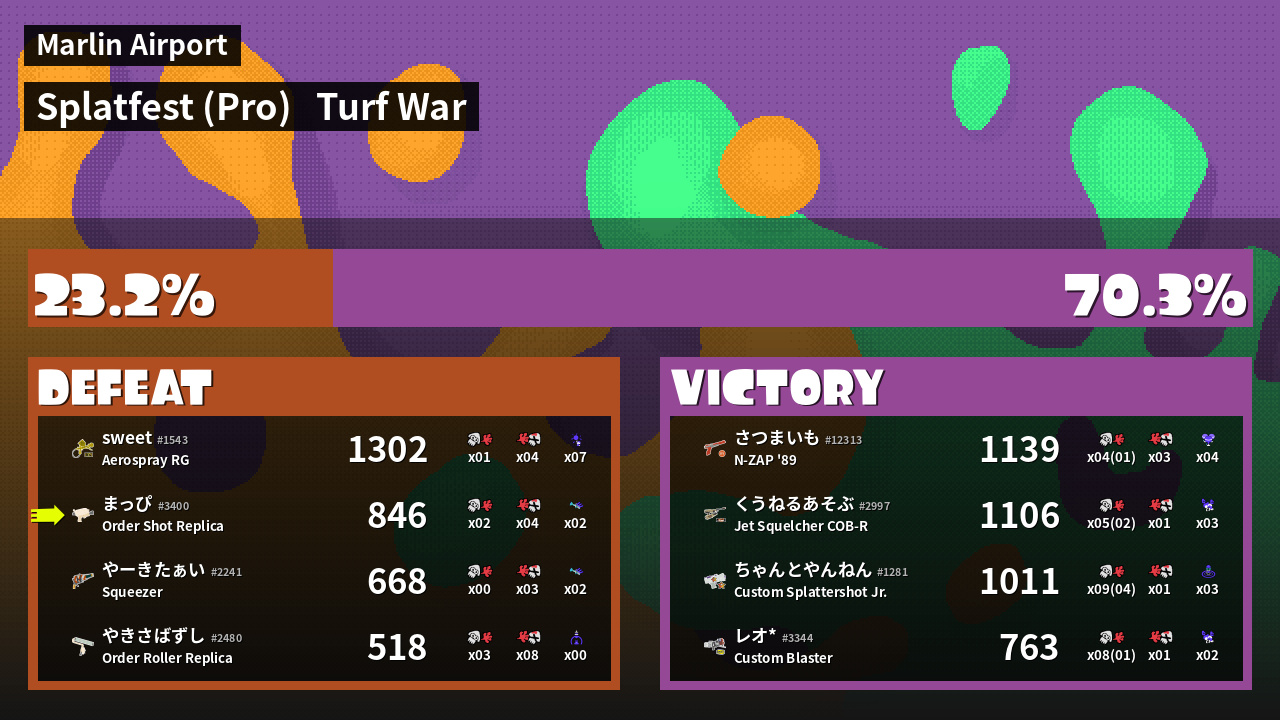 | Medals | #1 Popular Target #1 Enemy-Base Inker #1 Super Jump Spot |