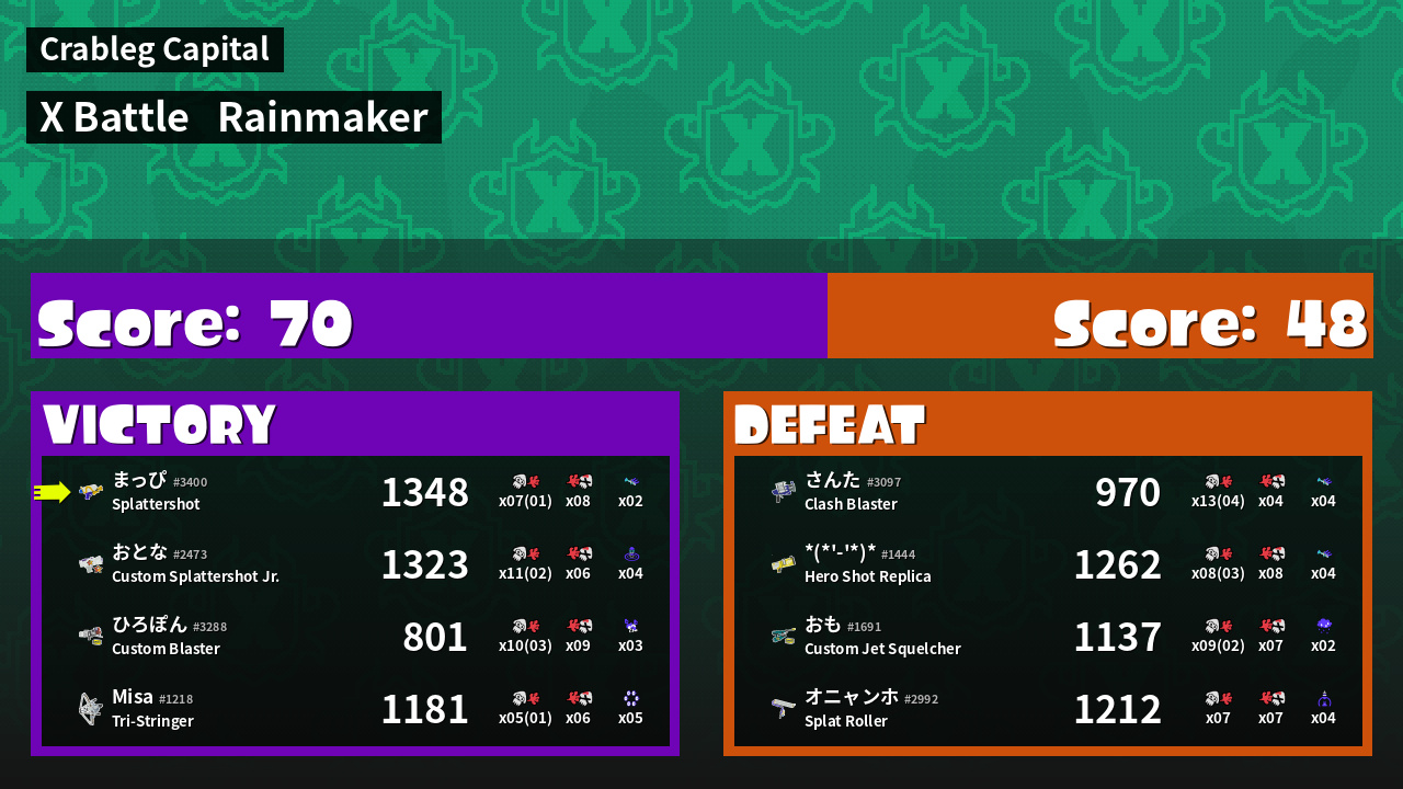 | Mode | Rainmaker - X Battle |