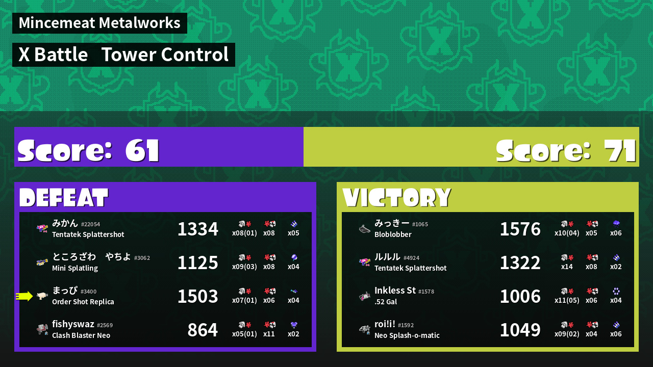 | Mode | Tower Control - X Battle |