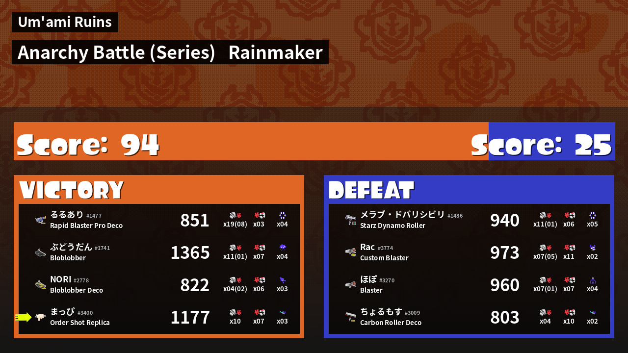 | Mode | Rainmaker - Anarchy Battle (Series) |