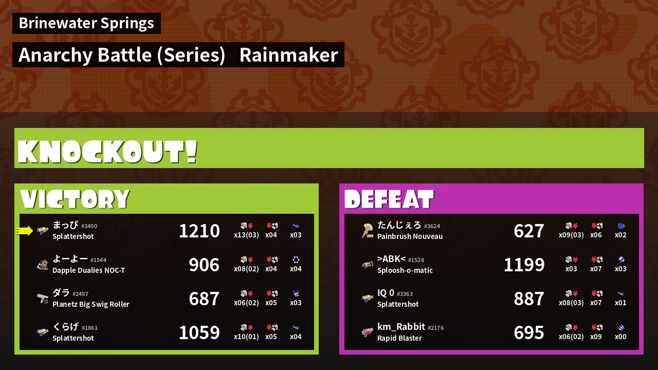 | Mode | Rainmaker - Anarchy Battle (Series) |
