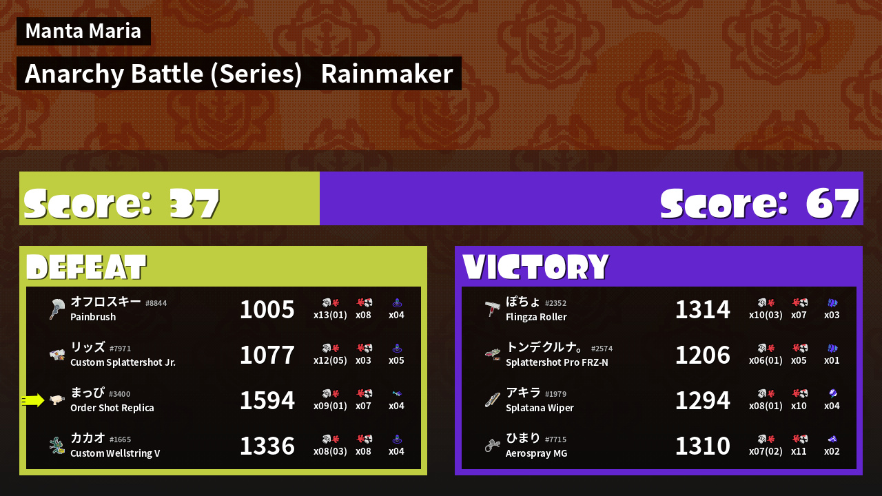Results of まっぴ's Battle