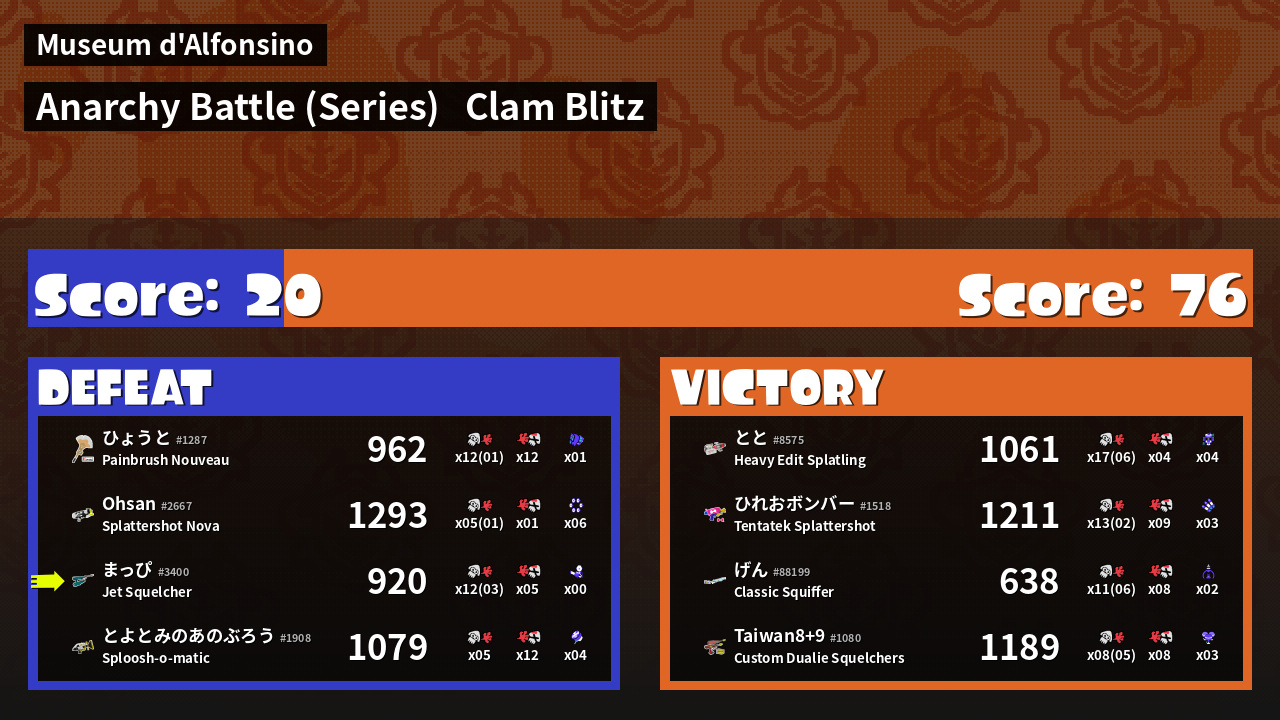 | Mode | Clam Blitz - Anarchy Battle (Series) |
