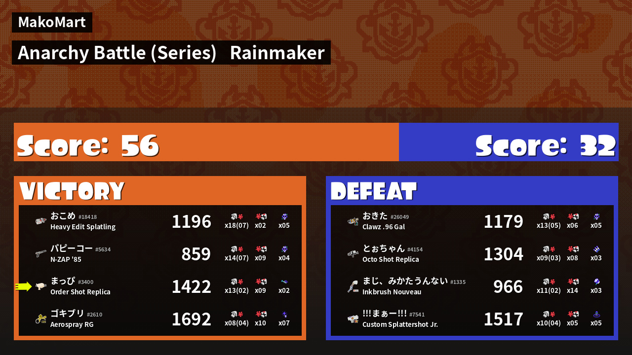 | Mode | Rainmaker - Anarchy Battle (Series) |