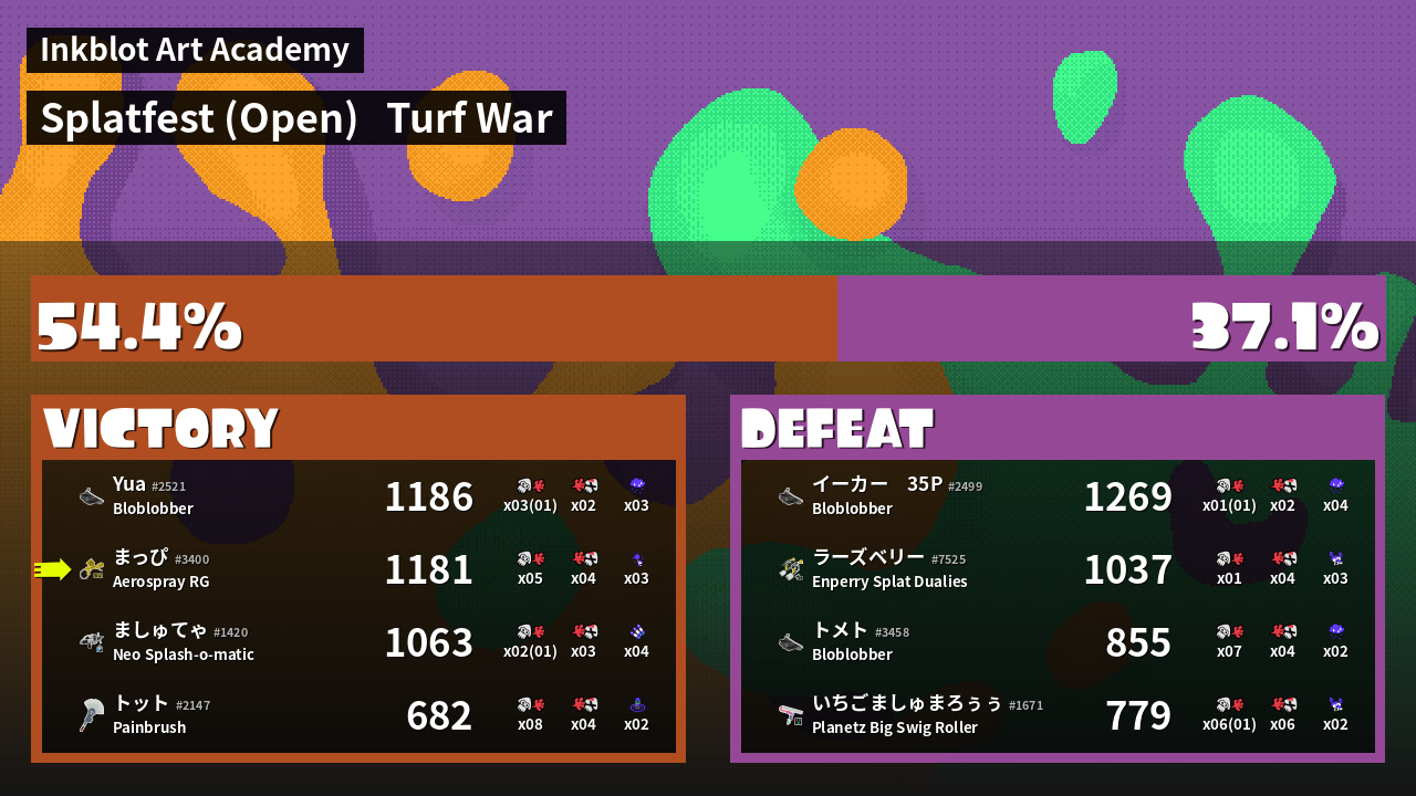 | Medals | #1 Enemy-Base Inker #1 Base Defender #2 Overall Splatter |