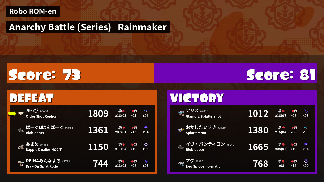 Results of まっぴ's Battle