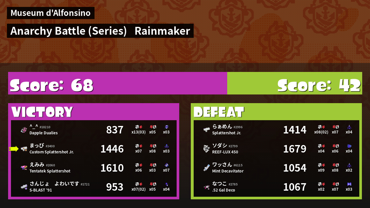 Results of まっぴ's Battle