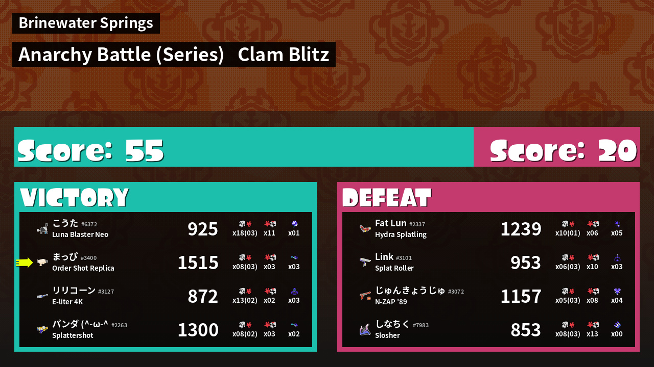 | Mode | Clam Blitz - Anarchy Battle (Series) |