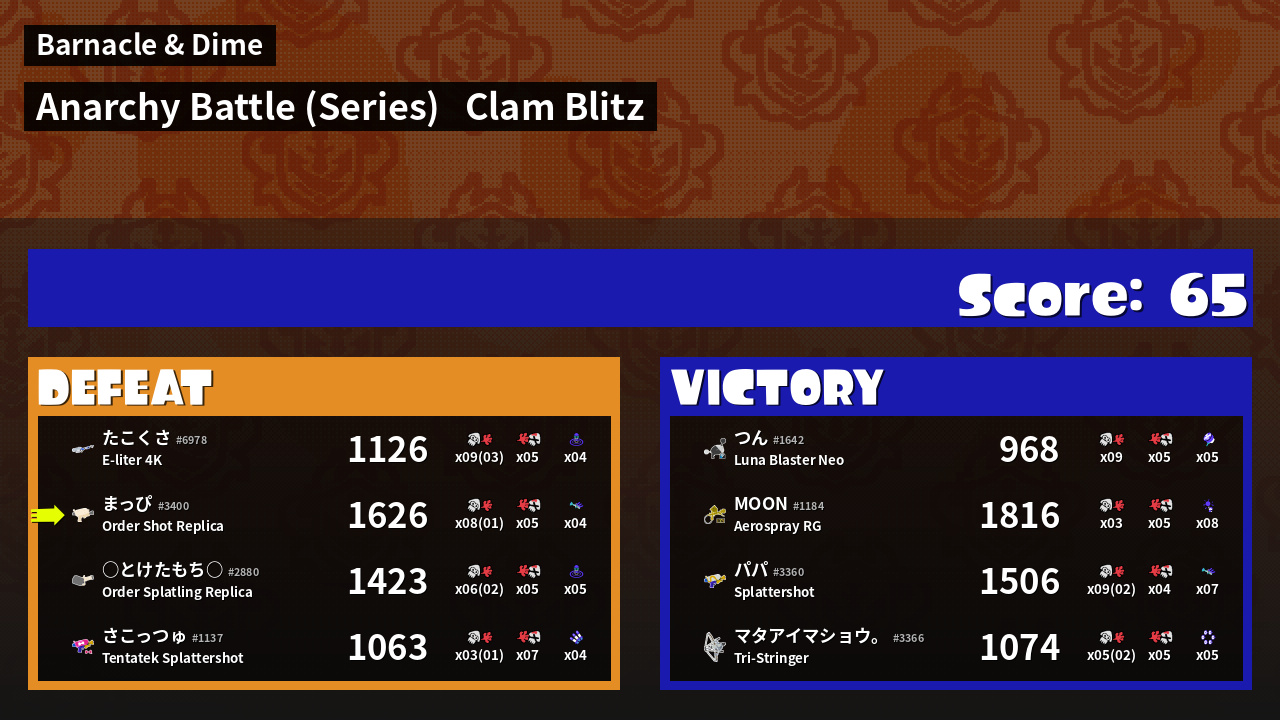 | Mode | Clam Blitz - Anarchy Battle (Series) |