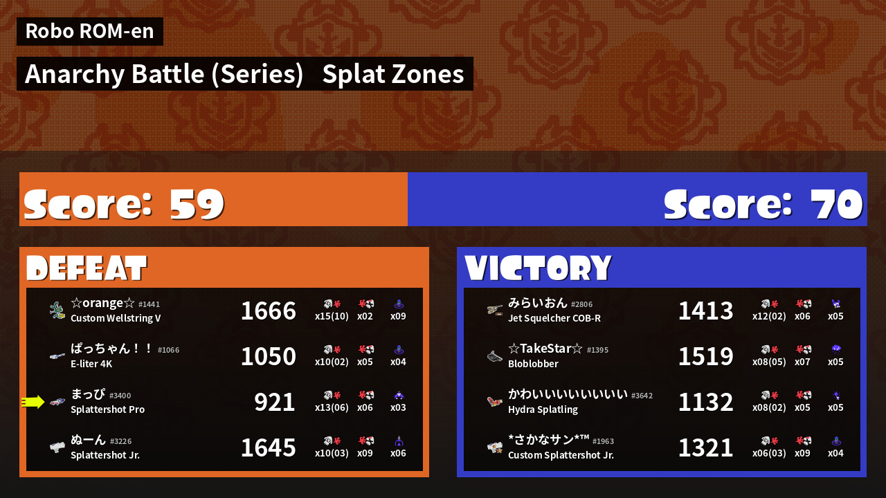 | Mode | Splat Zones - Anarchy Battle (Series) |