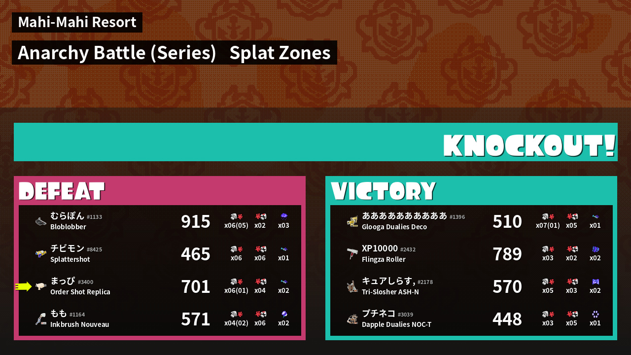 | Mode | Splat Zones - Anarchy Battle (Series) |
