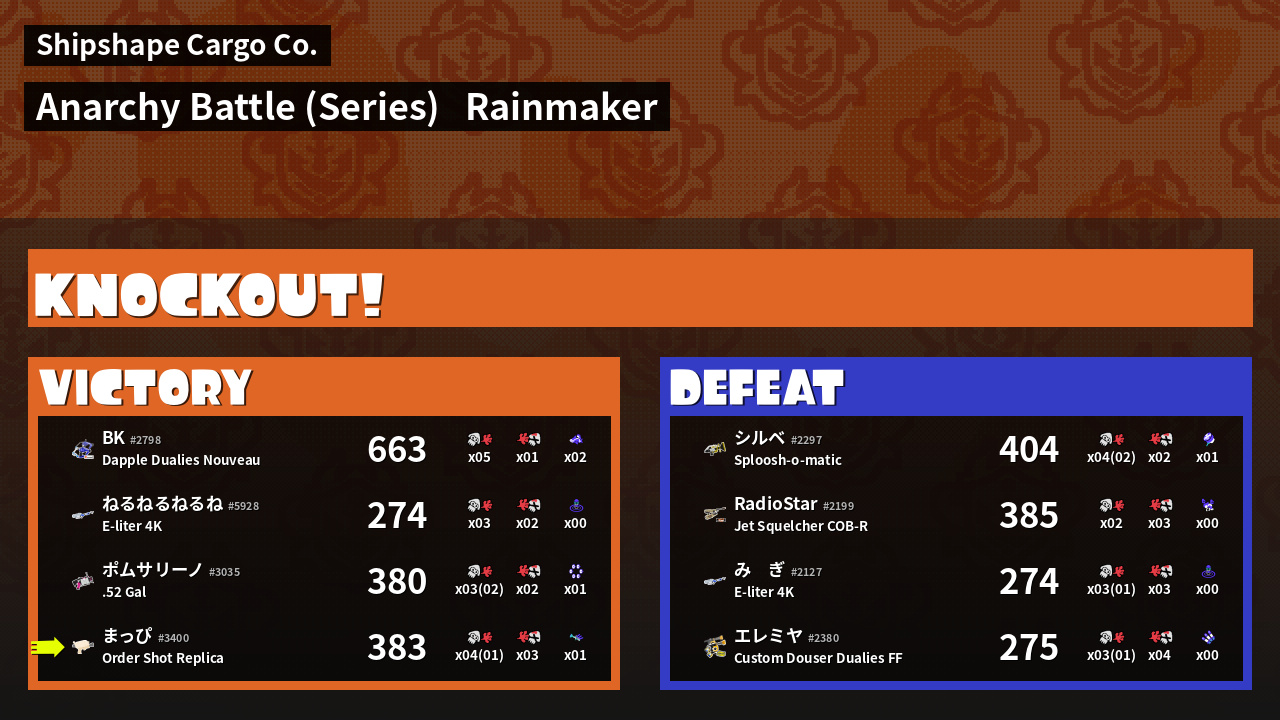 | Mode | Rainmaker - Anarchy Battle (Series) |