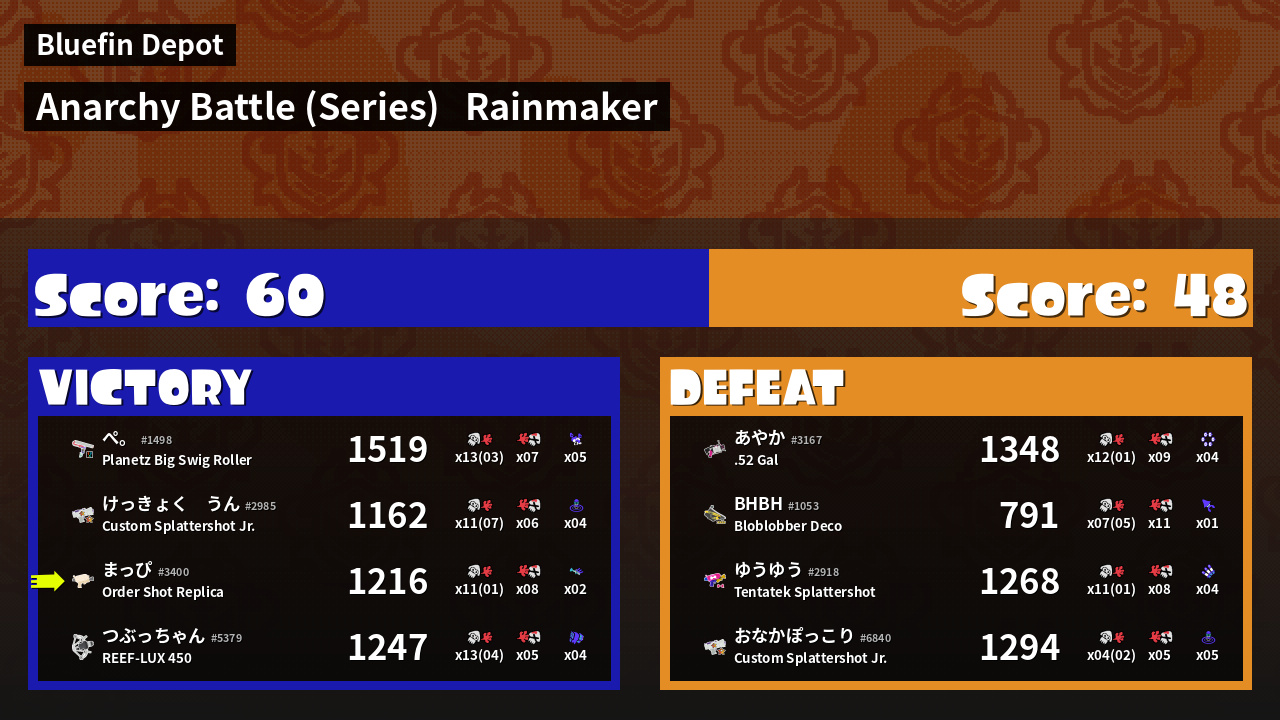 | Mode | Rainmaker - Anarchy Battle (Series) |