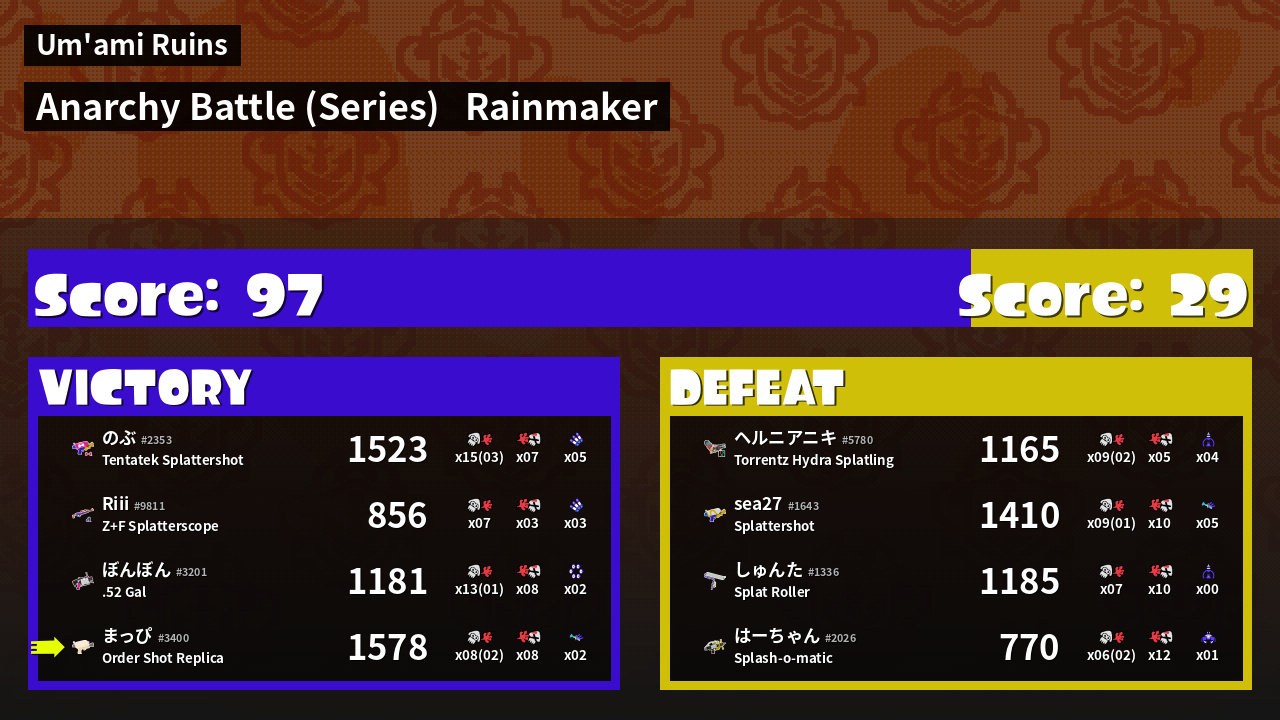 | Mode | Rainmaker - Anarchy Battle (Series) |