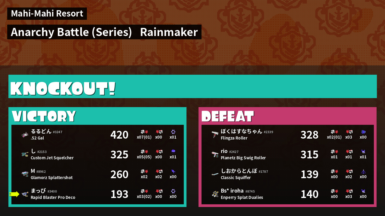 | Mode | Rainmaker - Anarchy Battle (Series) |