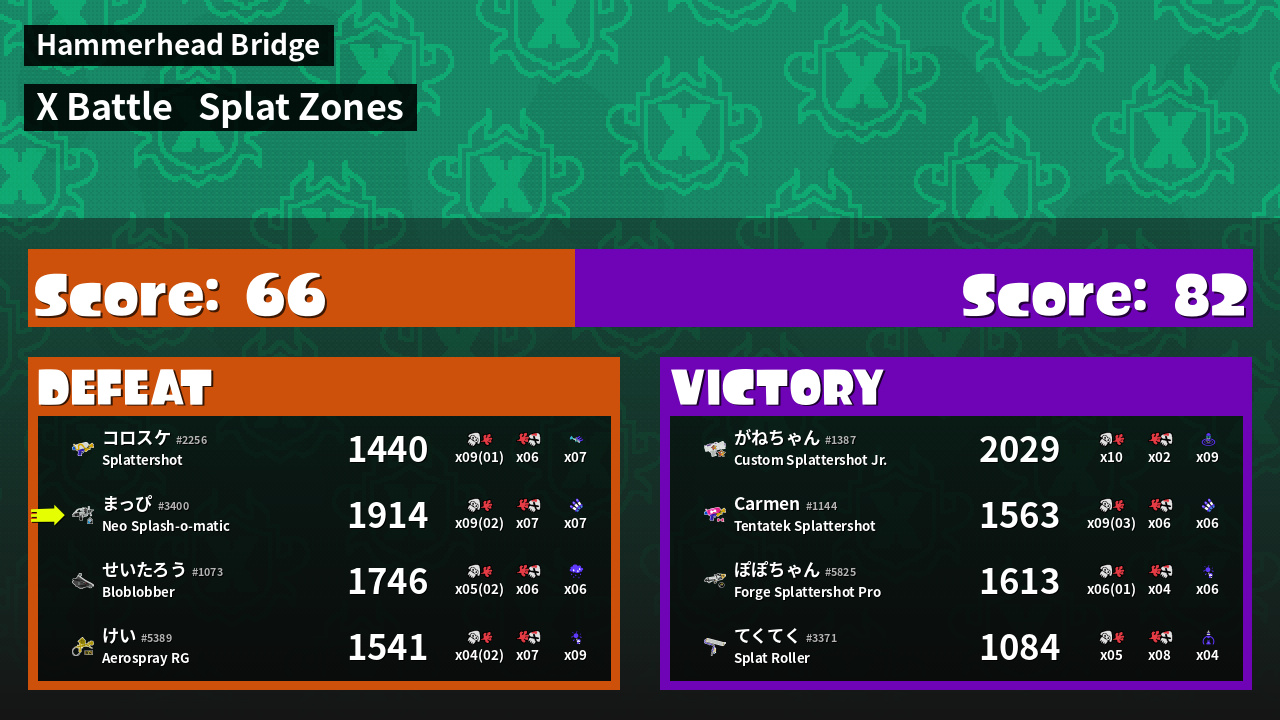 | Mode | Splat Zones - X Battle |