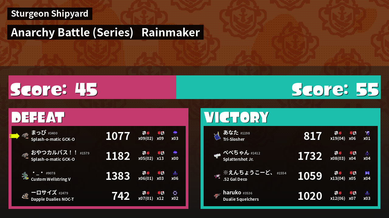 | Mode | Rainmaker - Anarchy Battle (Series) |