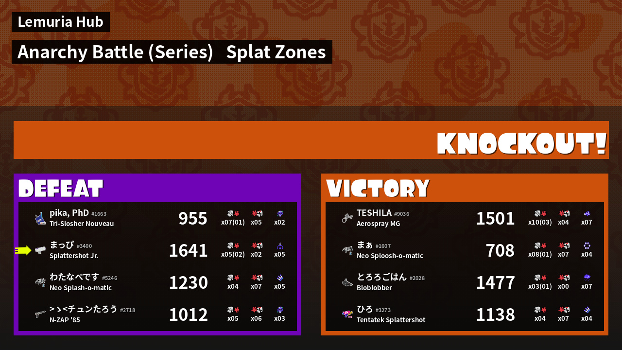 | Mode | Splat Zones - Anarchy Battle (Series) |
