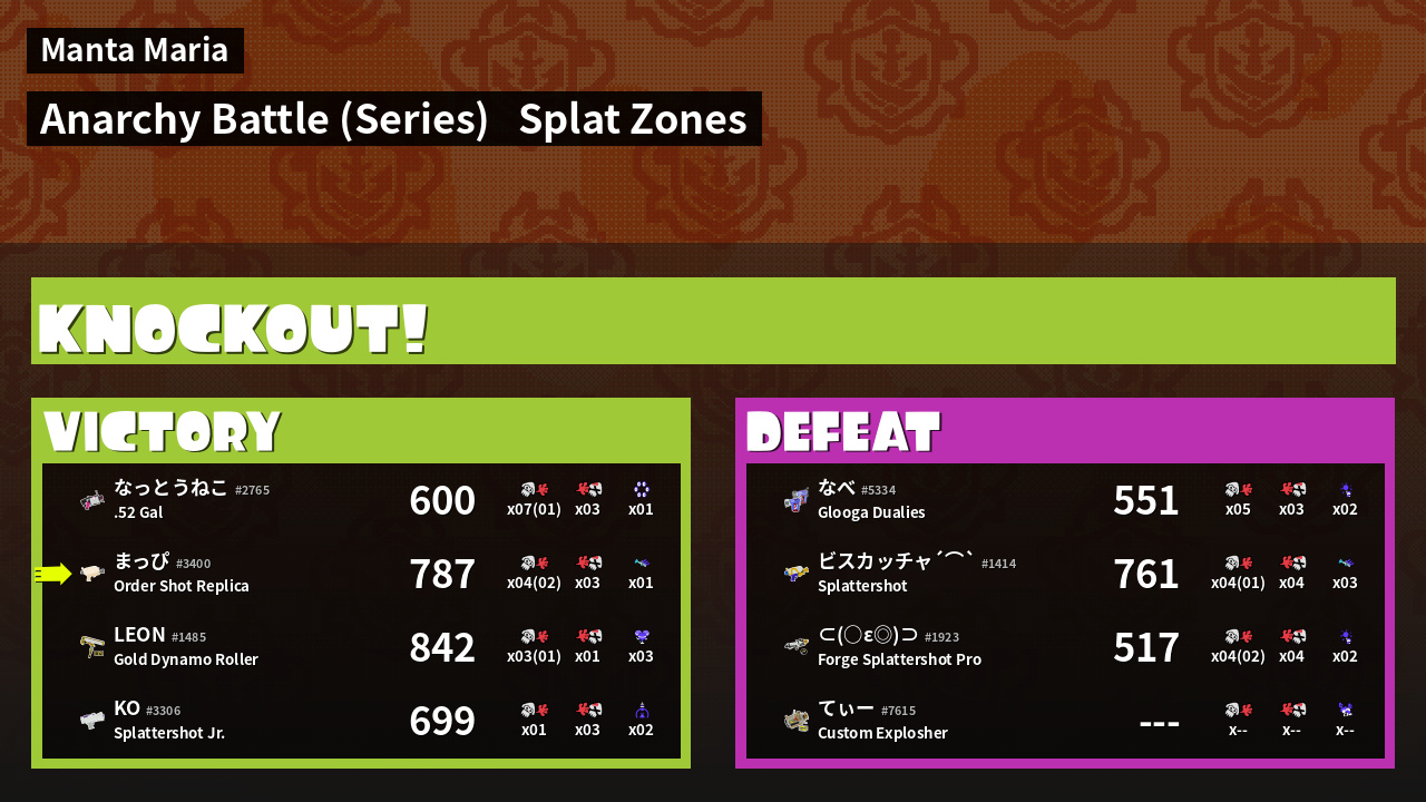 | Medals | #1 Splat Zone Guard #1 Splat Assister #2 Overall Splatter |