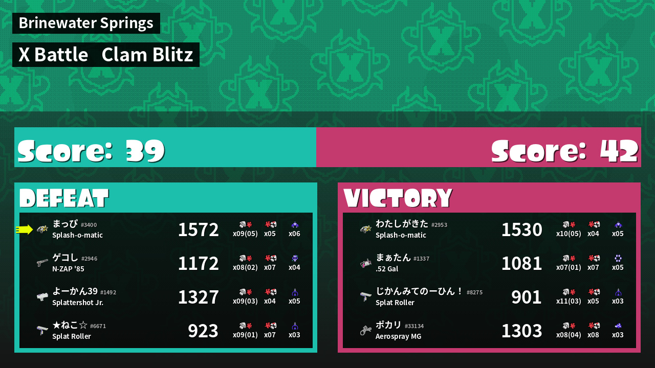 | Mode | Clam Blitz - X Battle |