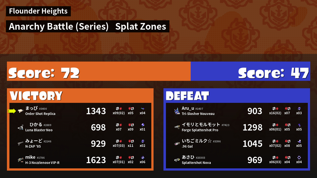 | Mode | Splat Zones - Anarchy Battle (Series) |