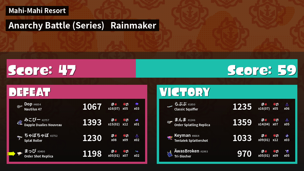 | Mode | Rainmaker - Anarchy Battle (Series) |