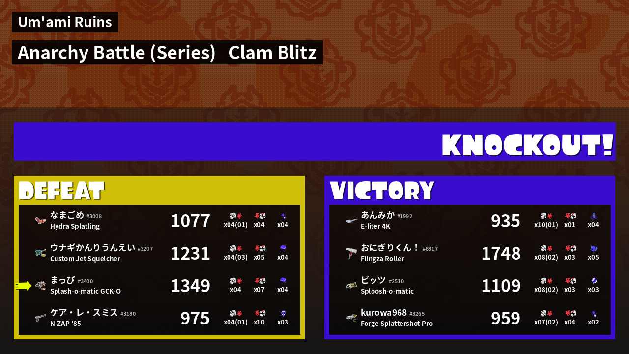 | Mode | Clam Blitz - Anarchy Battle (Series) |
