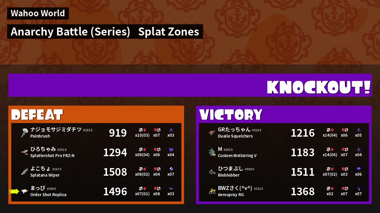 | Mode | Splat Zones - Anarchy Battle (Series) |
