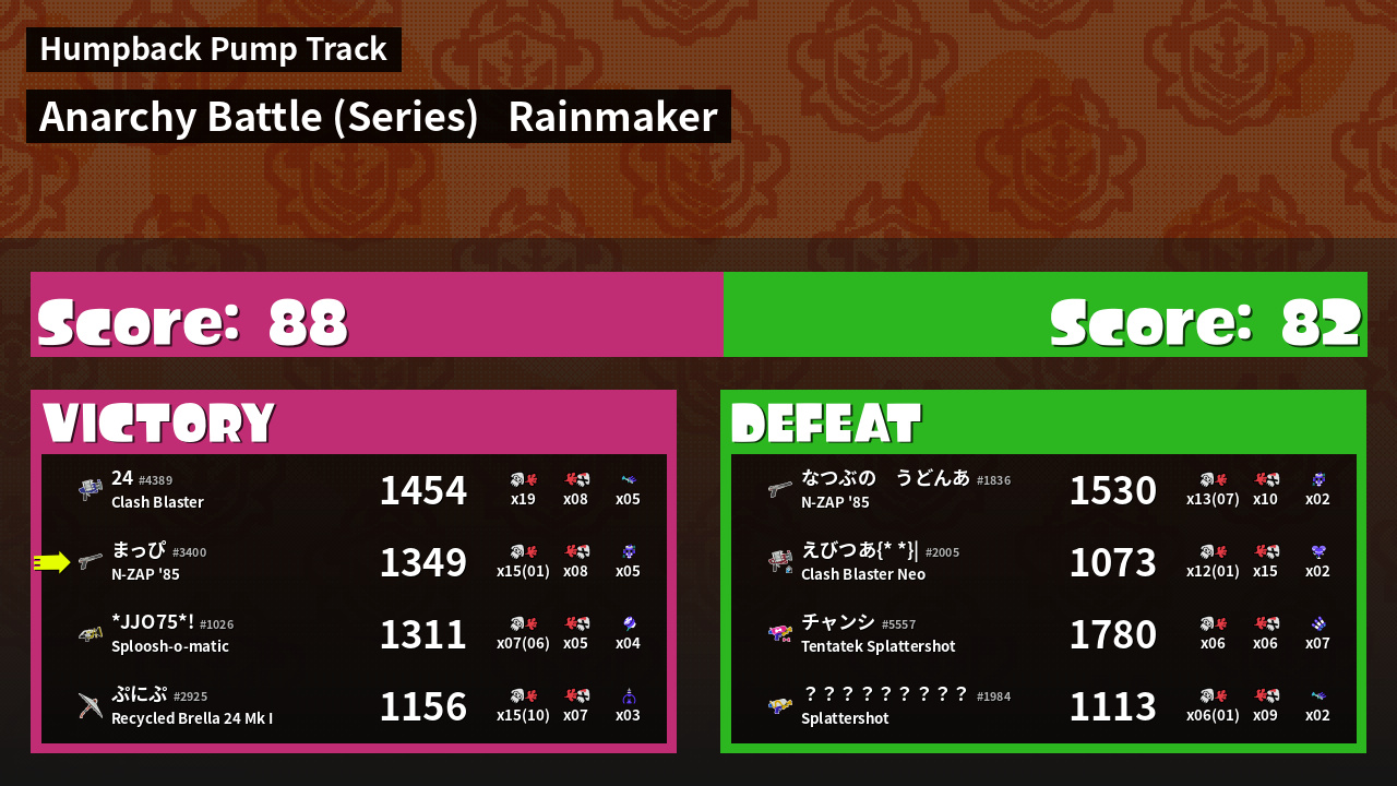 | Mode | Rainmaker - Anarchy Battle (Series) |