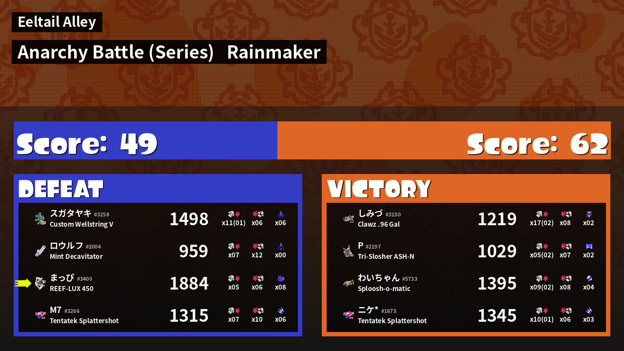 | Mode | Rainmaker - Anarchy Battle (Series) |