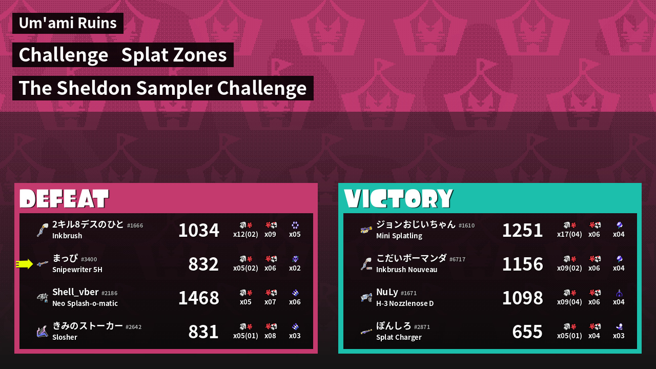 | Medals | #1 Splat Zone Guard #1 Splat Assister #1 Damage Taker |