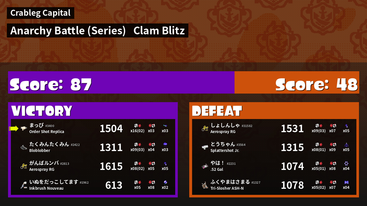 Results of まっぴ's Battle